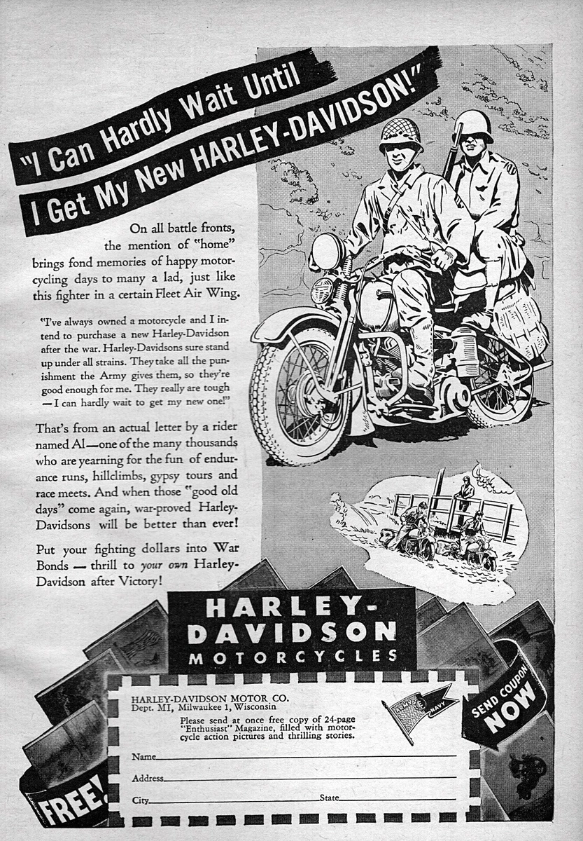 1944 Harley Davidson WLA Liberator Motorcycle Original Color Print